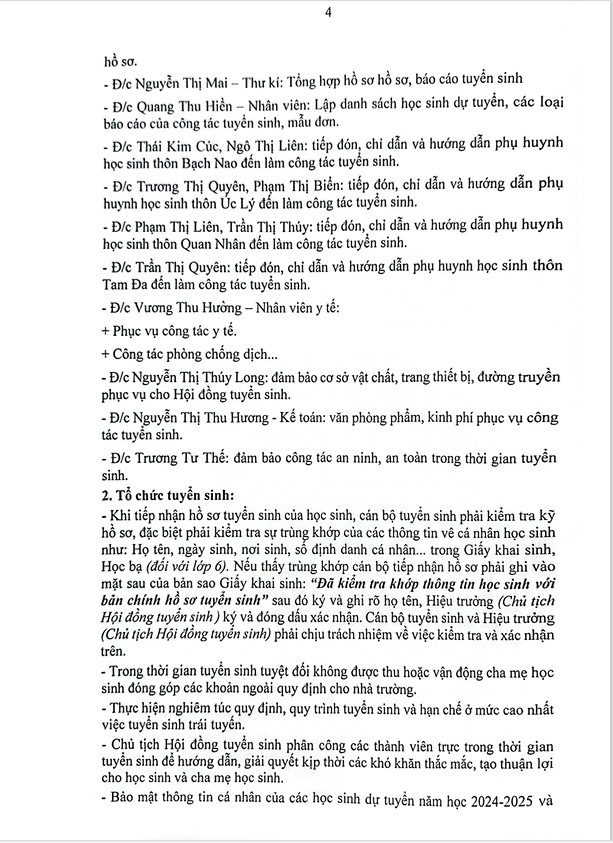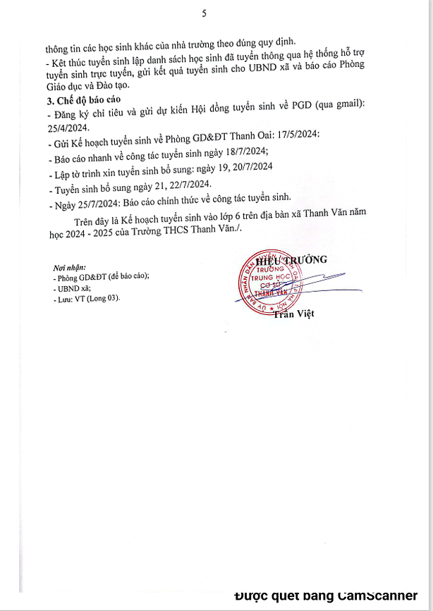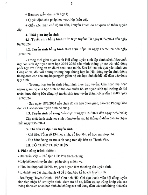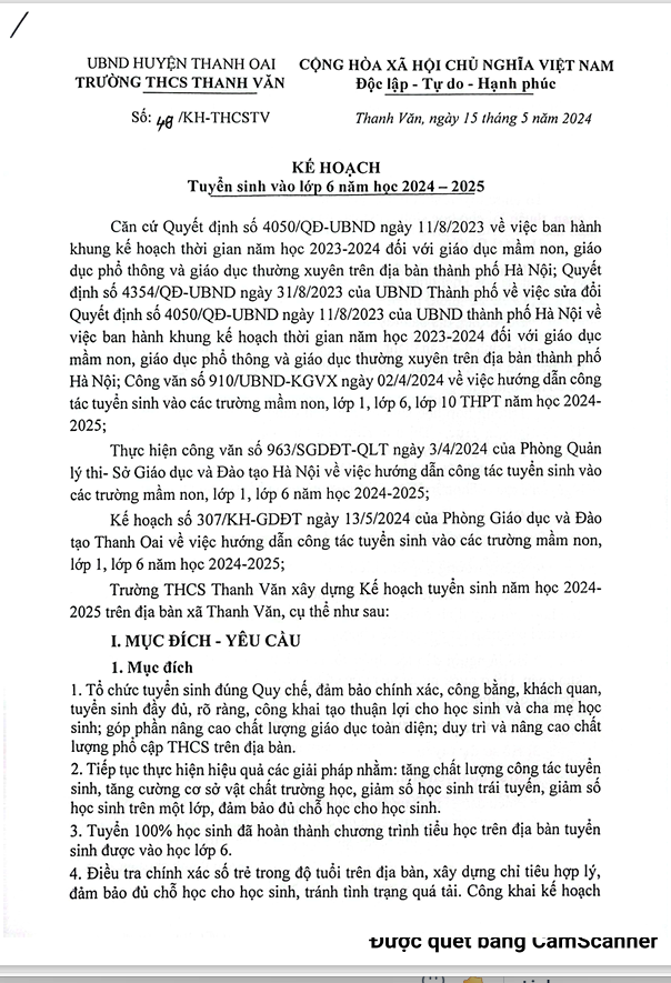 KẾ HOẠCH TUYỂN SINH LỚP 6 NĂM HỌC 2024 - 2025