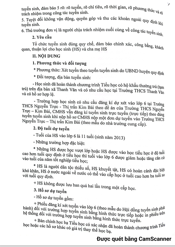 KẾ HOẠCH TUYỂN SINH LỚP 6 NĂM HỌC 2024 -  2025