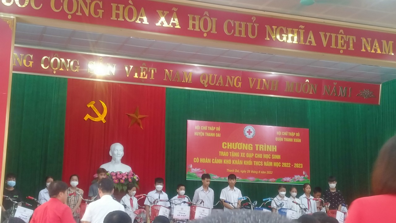 Trao tặng xe đạp cho học sinh có hoàn cảnh khó khăn khối THCS trên địa bàn huyện Thanh Oai