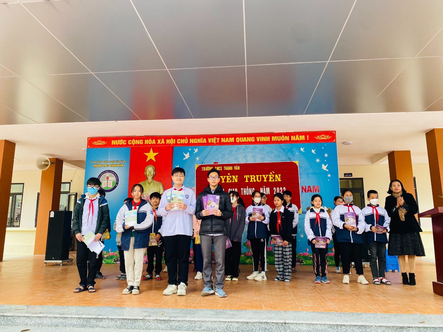 Hình ảnh tặng quà học sinh hộ nghèo, cận nghèo năm học 2022 - 2023